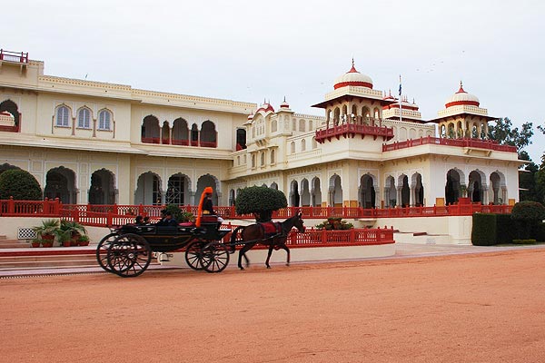 Rambagh Palace: Jaipur is said to be a tourist's paradise. It offers a large number of monuments and bustling market to watch but also an opportunity to enjoy Maharaja like stay with all modern luxuries in heritage hotels. The heritage hotels are old palaces and mansions converted into hotels. Jaipur is particularly well-endowed with hotels that have been converted from former palaces. Pre-eminent among the heritage hotels is the Rambagh Palace hotel. Rambagh palace hotel is one the most luxurious hotels of India and is being managed by Taj Group of Hotels. Maharaja of Jaipur Ram Sing II converted existing pavilions into a hunting lodge in the mid 19th century and, soon after succeeding as maharaja, the athletic Madho Singh II commissioned Sir Swinton Jacob to adapt the lodge into a sports complex .This later became the principal residence of Madho Singh's adopted son, Man Singh II, who ruled Jaipur State from Rambagh Palace. When the rank of maharaja was abolished in India in 1949, Man Singh, known to his intimates as Jai and his wife Gayatri Devi moved to the smaller Raj Mahal, a palace where they resided until Man Singh was appointed India's ambassador to Spain. He was an enthusiastic polo player and regularly practised on his father's ground. This polo ground still survives adjacent to the Rambagh Palace Hotel and where matches take place every March. In a match at Cirencester, England, in 1970, Jai, aged 54, fell from his horse and was killed. The hotel's Polo Bar commemorates his great passion for the sport. From the polo ground can be seen the Moti Doongri castle to which the royal treasury was transferred from Nahargarh Fort. If possible, try to have a peek at the Rambagh Palace Hotel's Princess Suite, one of the loveliest hotel rooms in India.